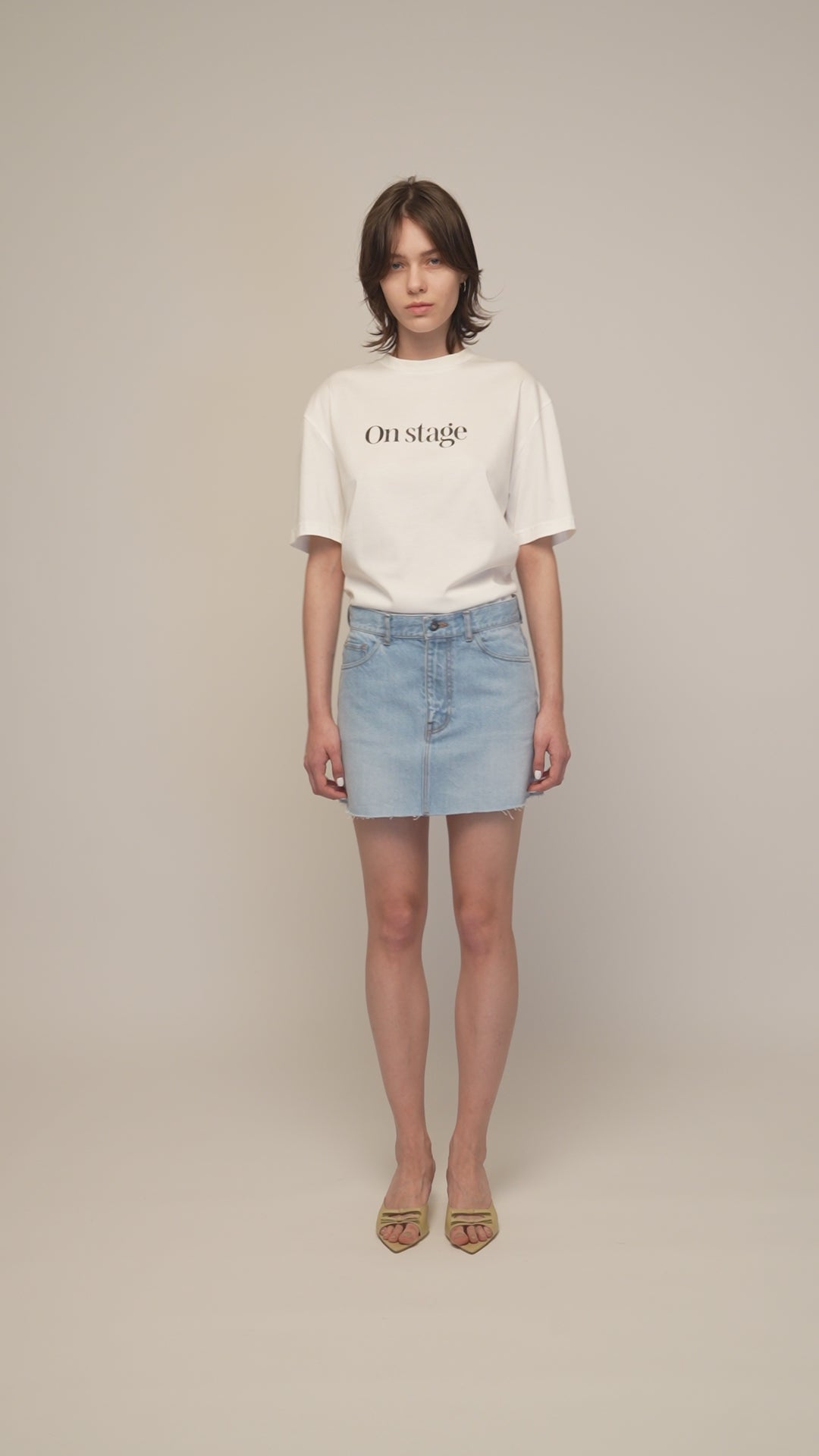 ローライズのヴィンテージ風デニムミニスカート。淡いアイスブルーカラーに切りっぱなしの裾がヴィンテージ感を漂わせながら、色落ち加工はあまり施さない事でモダンさもキープ。ローライズで着用するサイズ感をオススメ致します。古さを感じさせないモダンなデニム見えが叶うクリーンなレザーパッチもポイントです。